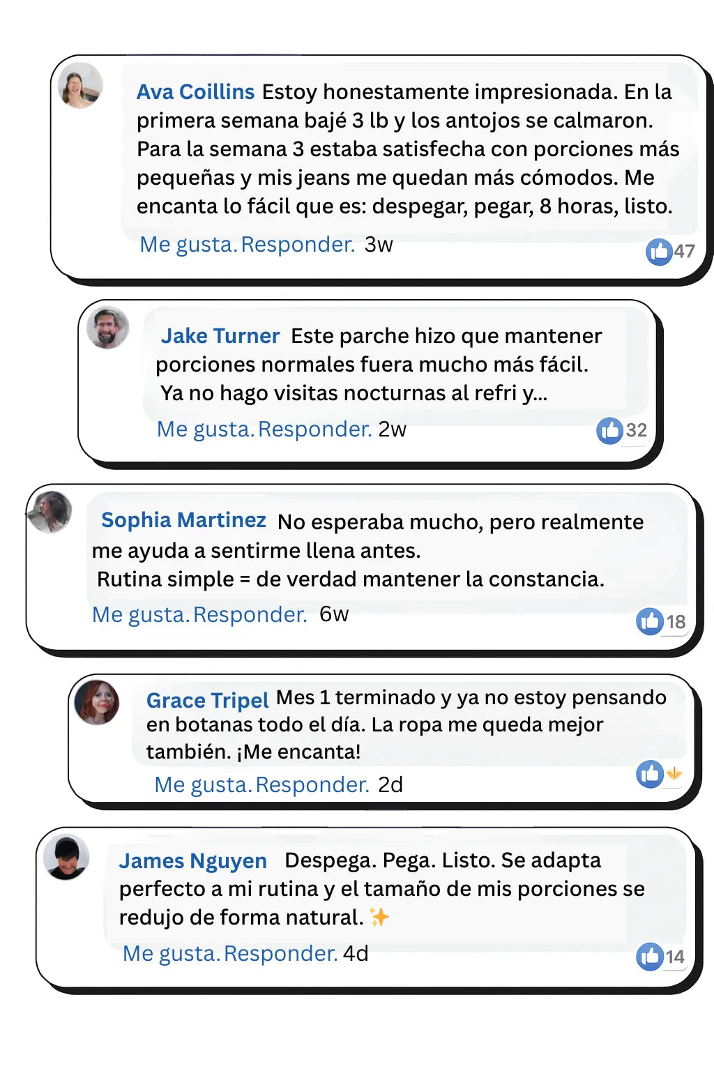 Algunas personas notan antojos más calmados en pocos días. La mayoría reporta los resultados más visibles después de 3–4 semanas de uso diario.